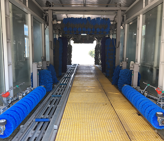 本款設備既能快速洗車,又能連續式洗車,每小時可實現50-60輛車的清洗能力,她的引進,大大的滿足了有較大營業場地,洗車量大的客戶的需求,她同時兼顧輪胎高清洗度和車身高擦干度,并具有拋光的功能。